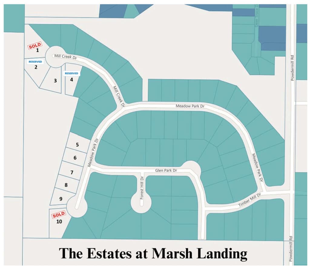 Land in this desirable neighborhood is selling fast. If you’re interested in owning a homesite in The Estates at Marsh Landing, we can help you find the perfect lot and begin your journey toward building a home that fits your lifestyle. Contact us today to learn more and reserve your site.