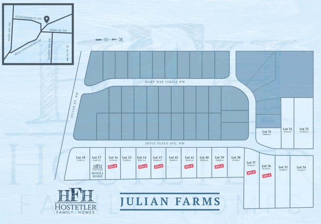 Julian Farms is a highly desirable community located in Jackson Township, just north of the intersection of Stuhldreher and Hills and Dales Rd NW, within the Jackson Local School District.